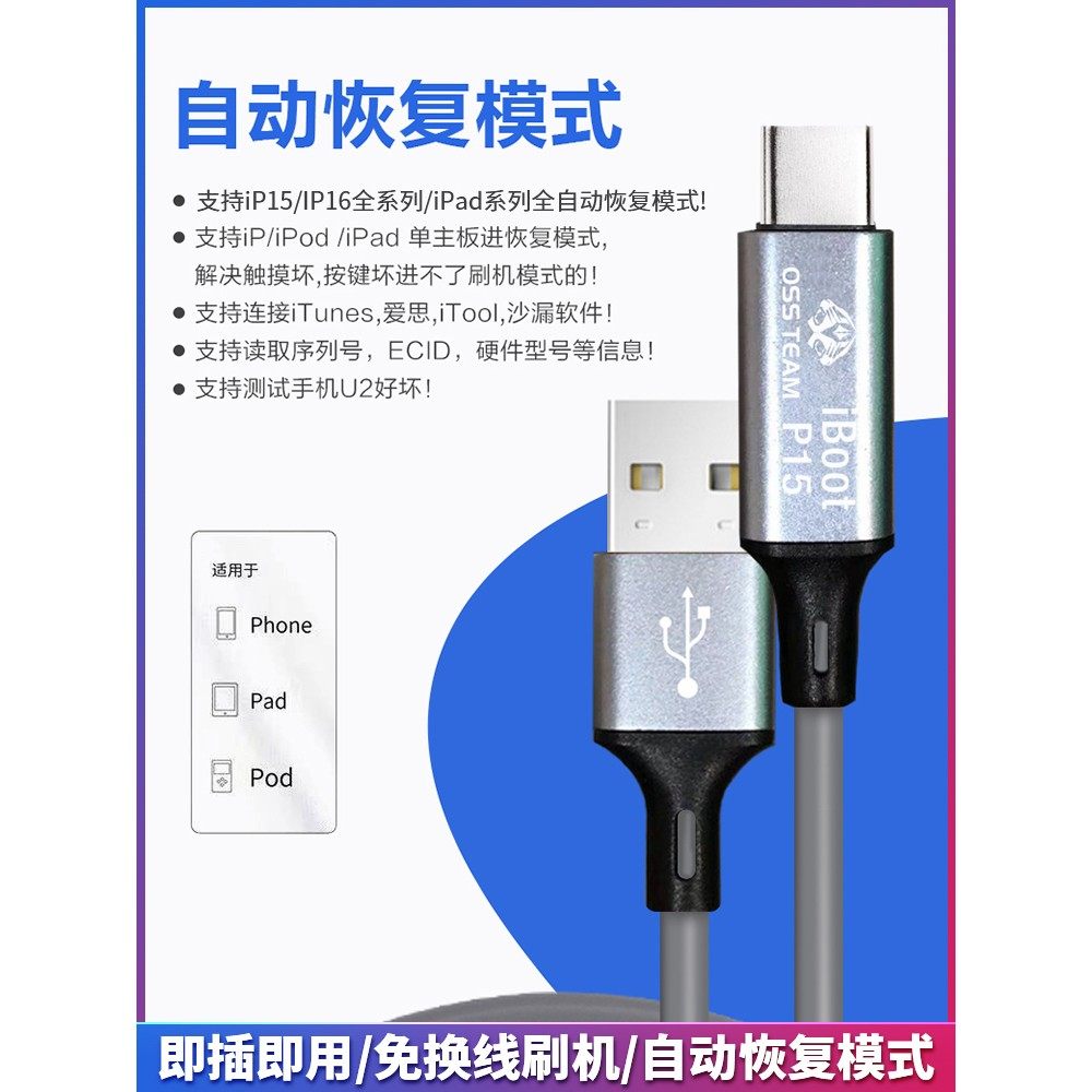 OSS15 16手机刷机工程线iphoneipad自动进恢复模式dfu数据线