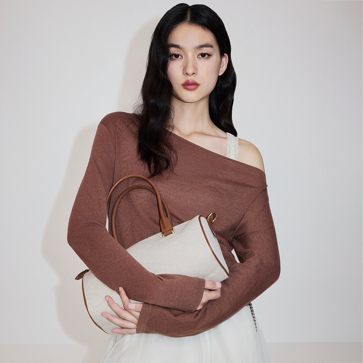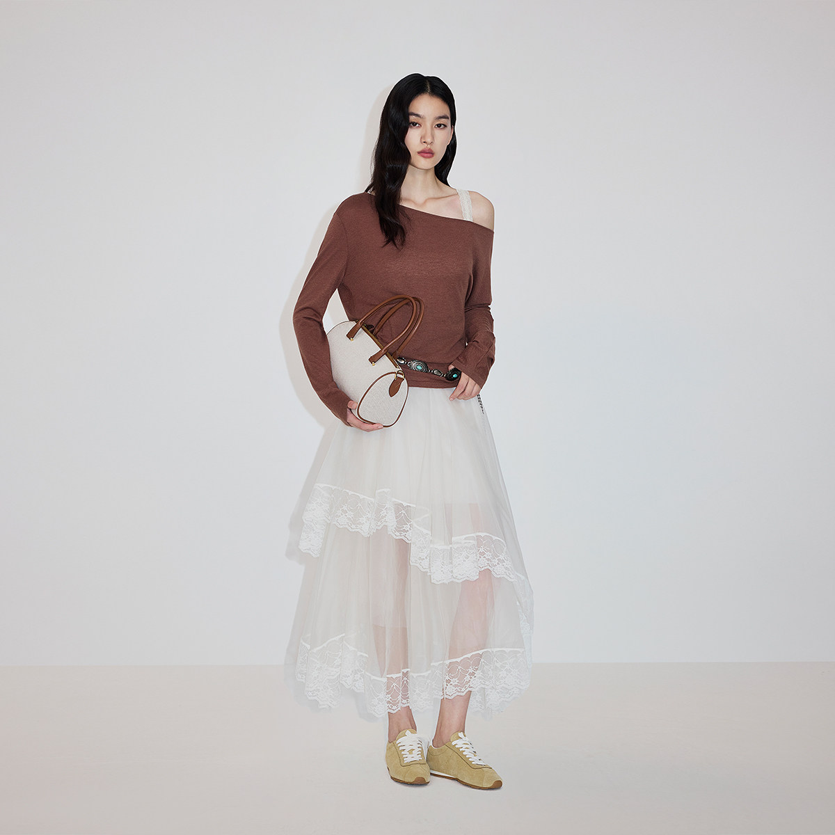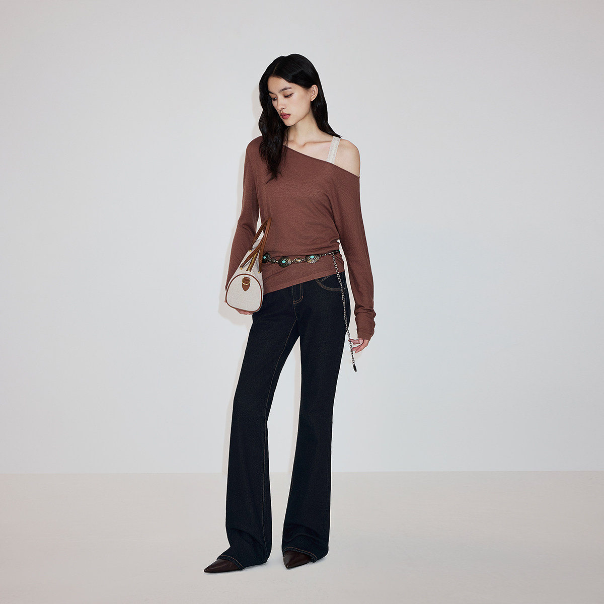 【新品】OCHIRLY欧时力 天丝羊绒醋酸斜肩轻薄针织毛衫女2026春季