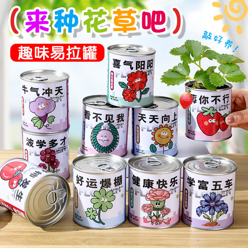 易拉罐植物盆栽种植种子绿蔬果花卉盲盒奖品班级儿童罐头小礼物迷你蔬菜水果花卉学生奖品创意礼物种子盲盒