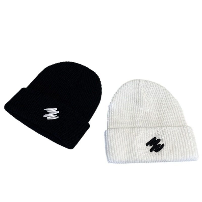 韩版字母刺绣毛线帽针织帽子男秋冬款潮情侣护耳冷帽黑色薄款白色