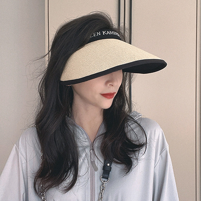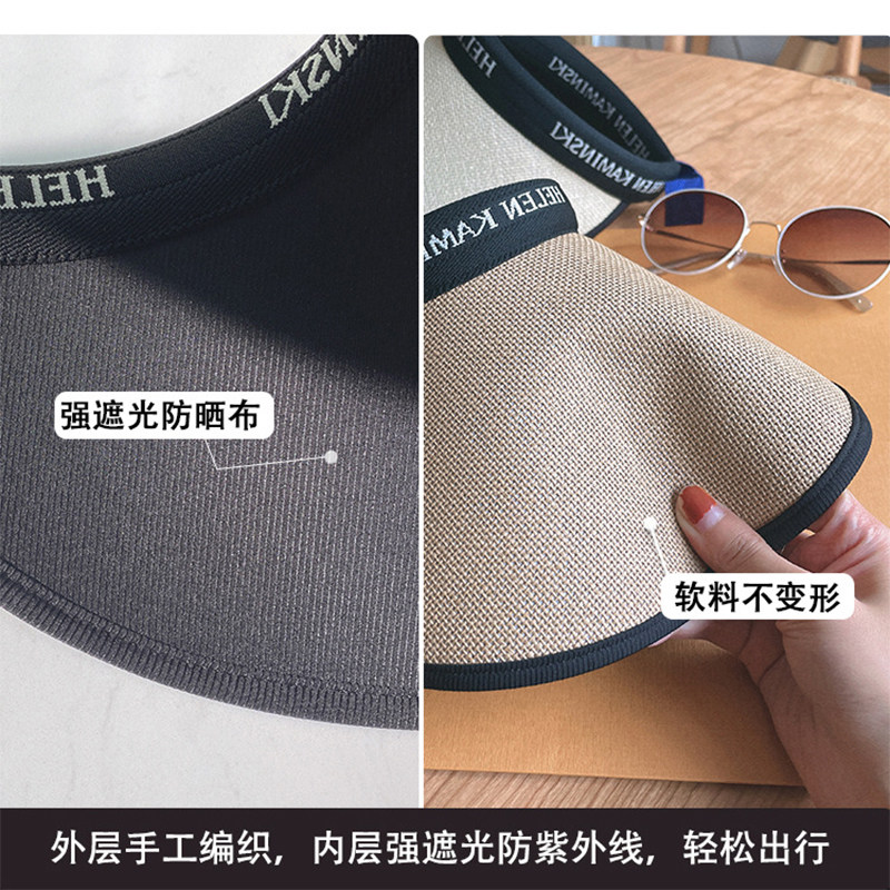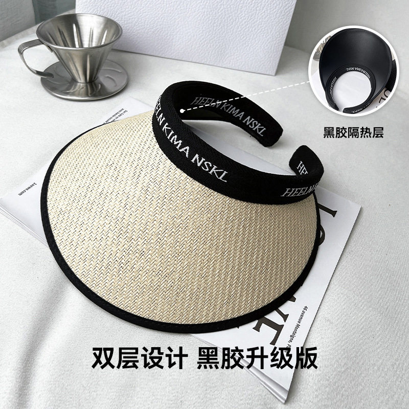 空顶防晒帽女夏黑胶草编帽遮阳帽子多规格