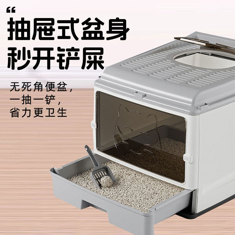 超大号全封闭猫砂盆抽屉双门升级款猫厕所超大空间无忧隔臭防侧漏