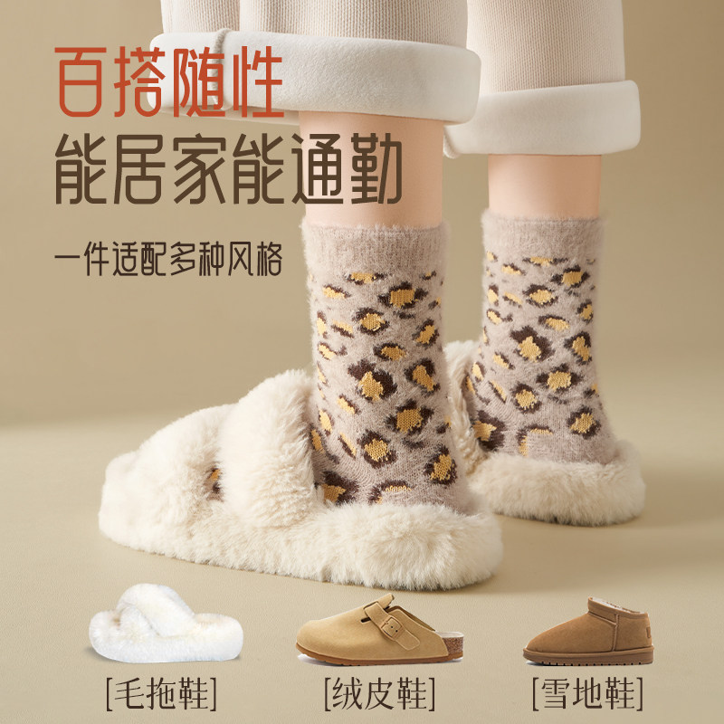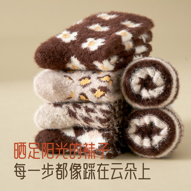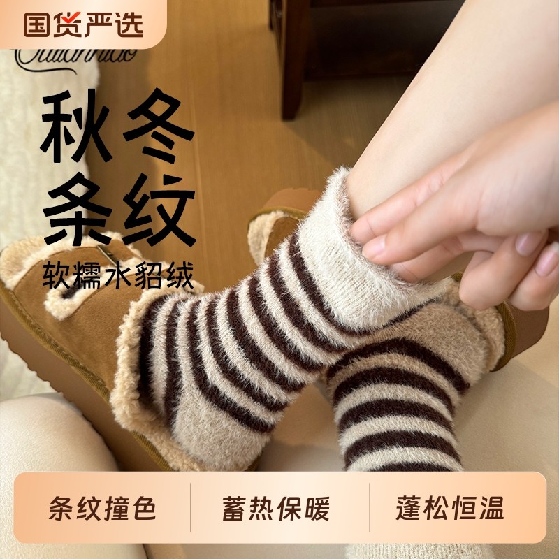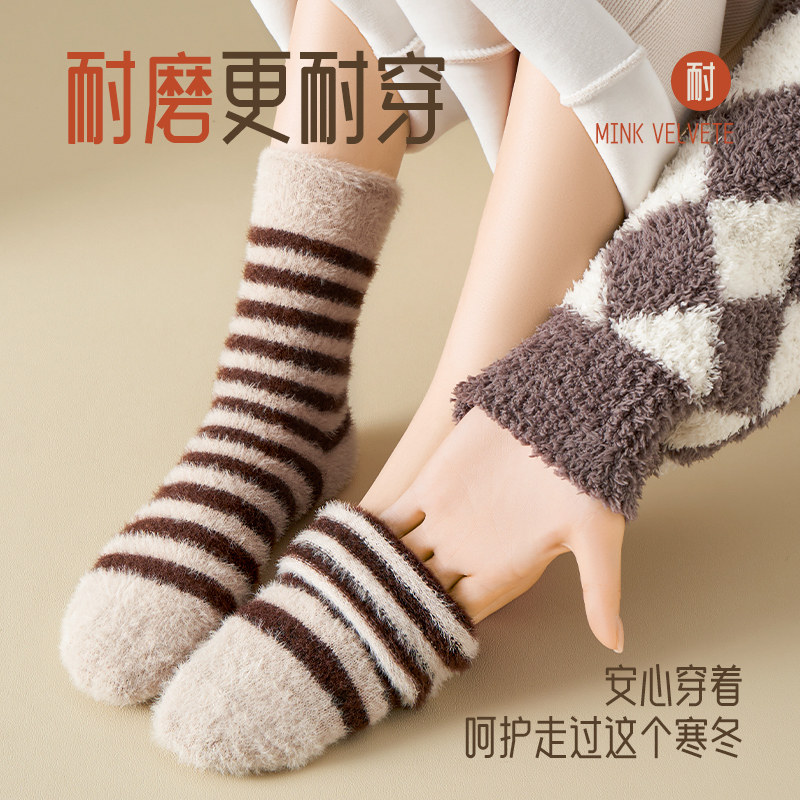 水貂绒袜子女秋冬款美拉德睡眠袜珊瑚绒月子袜加绒加厚中筒袜居家