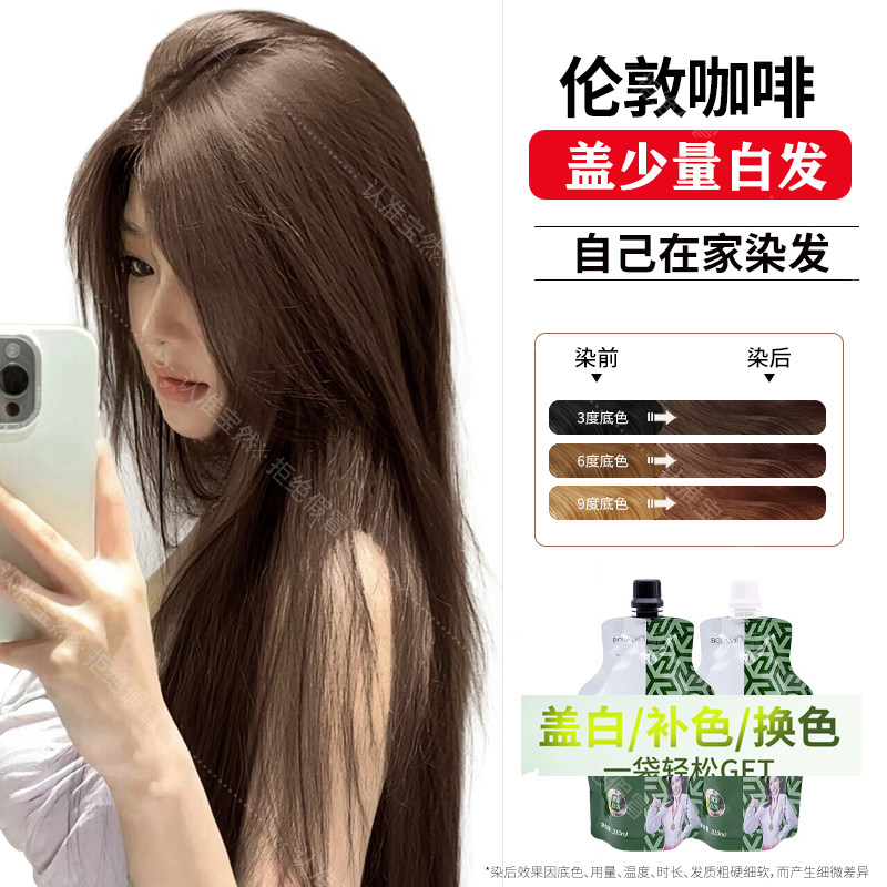 宝然大双支沙龙染发膏自己在家染发剂伦敦咖啡盖白官方旗舰店正品