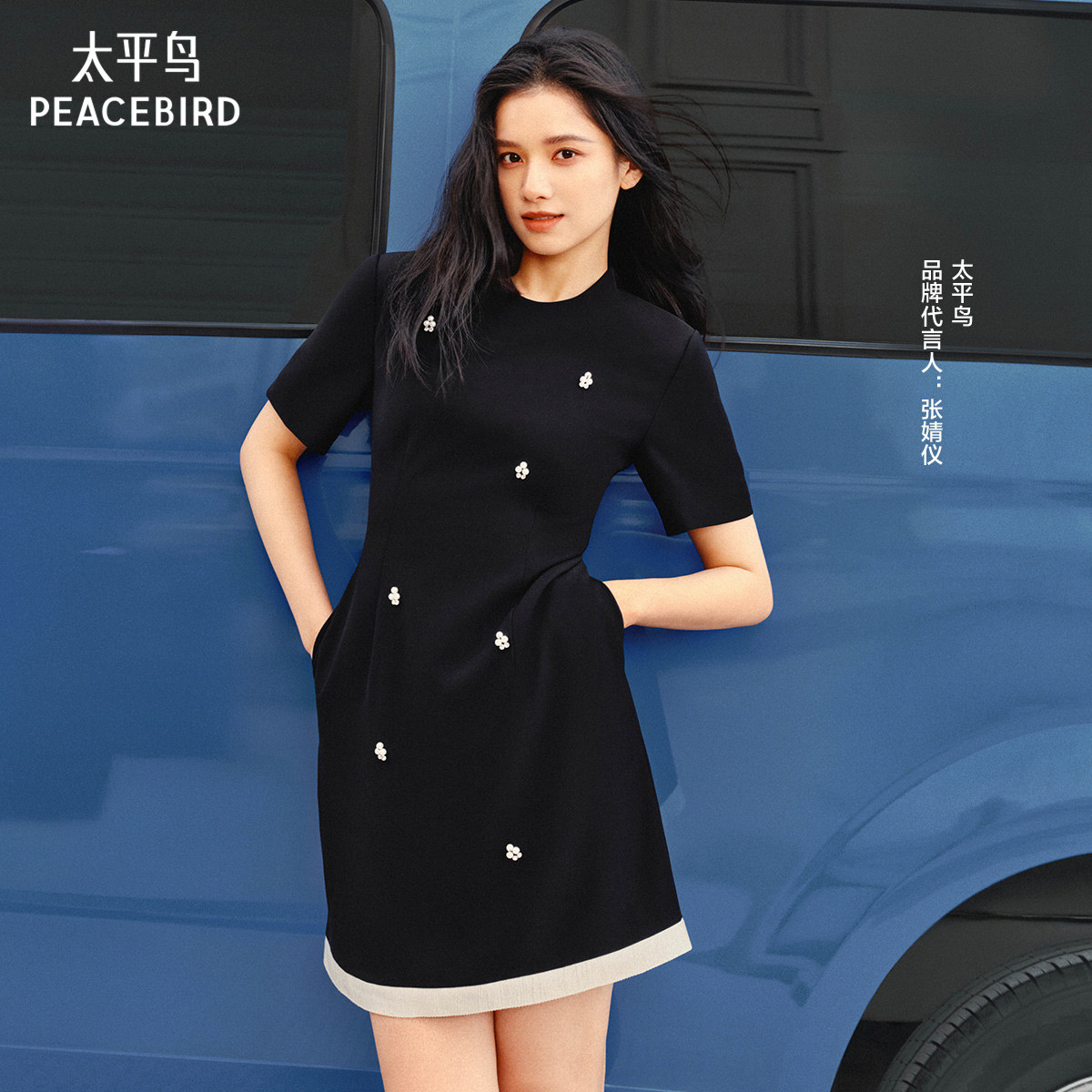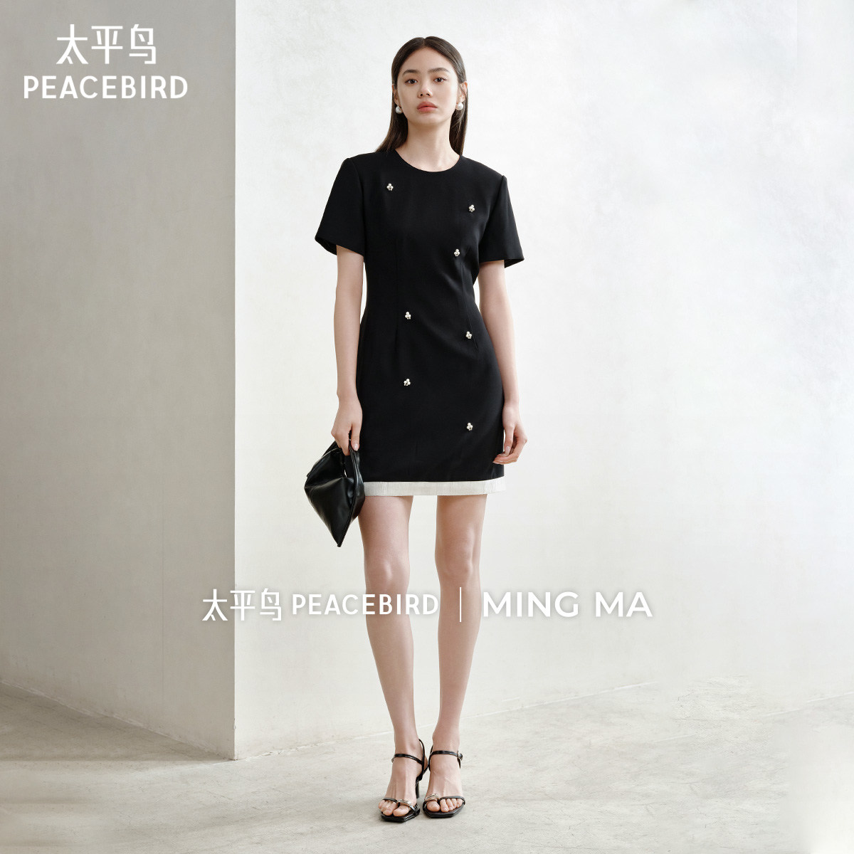 【张婧仪同款】太平鸟黑珍珠夏MINGMA联名收腰连衣裙短A1FAF2184