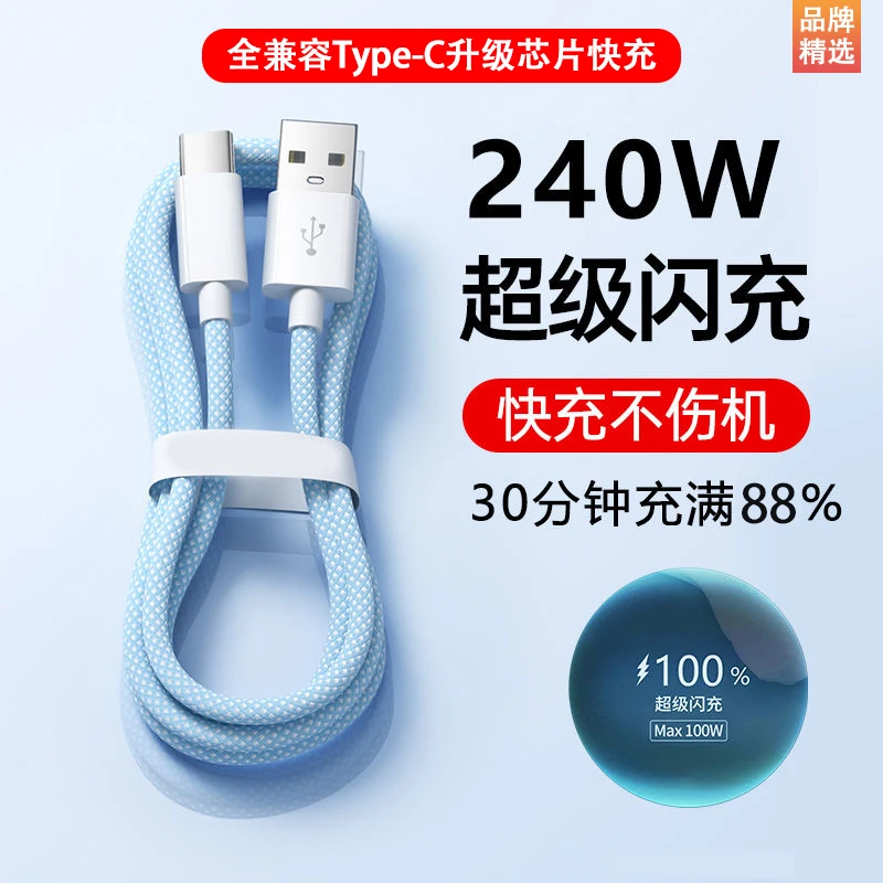 240W超级快充充电线数据线适用华为vivo荣耀iQOO手机Typec车载6A编织线闪充X200/X100mate70/60Magic7/6Neo10
