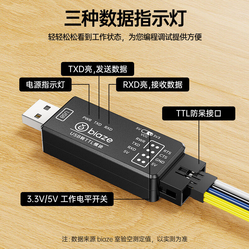 毕亚兹USB转TTL模块单片机烧录工业级刷机板转UART串口编程下载器