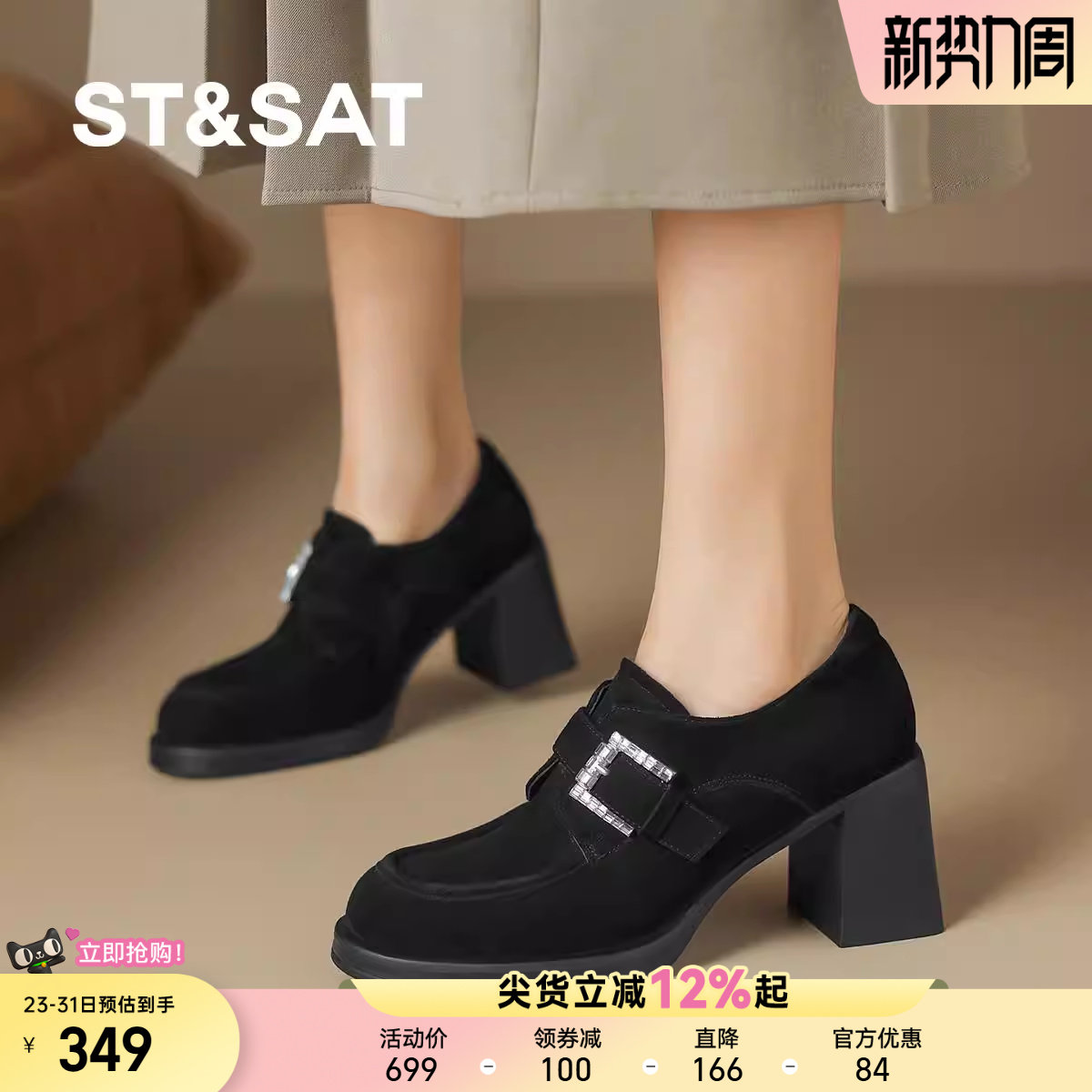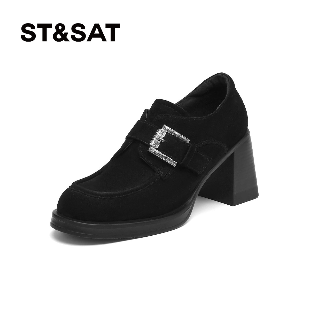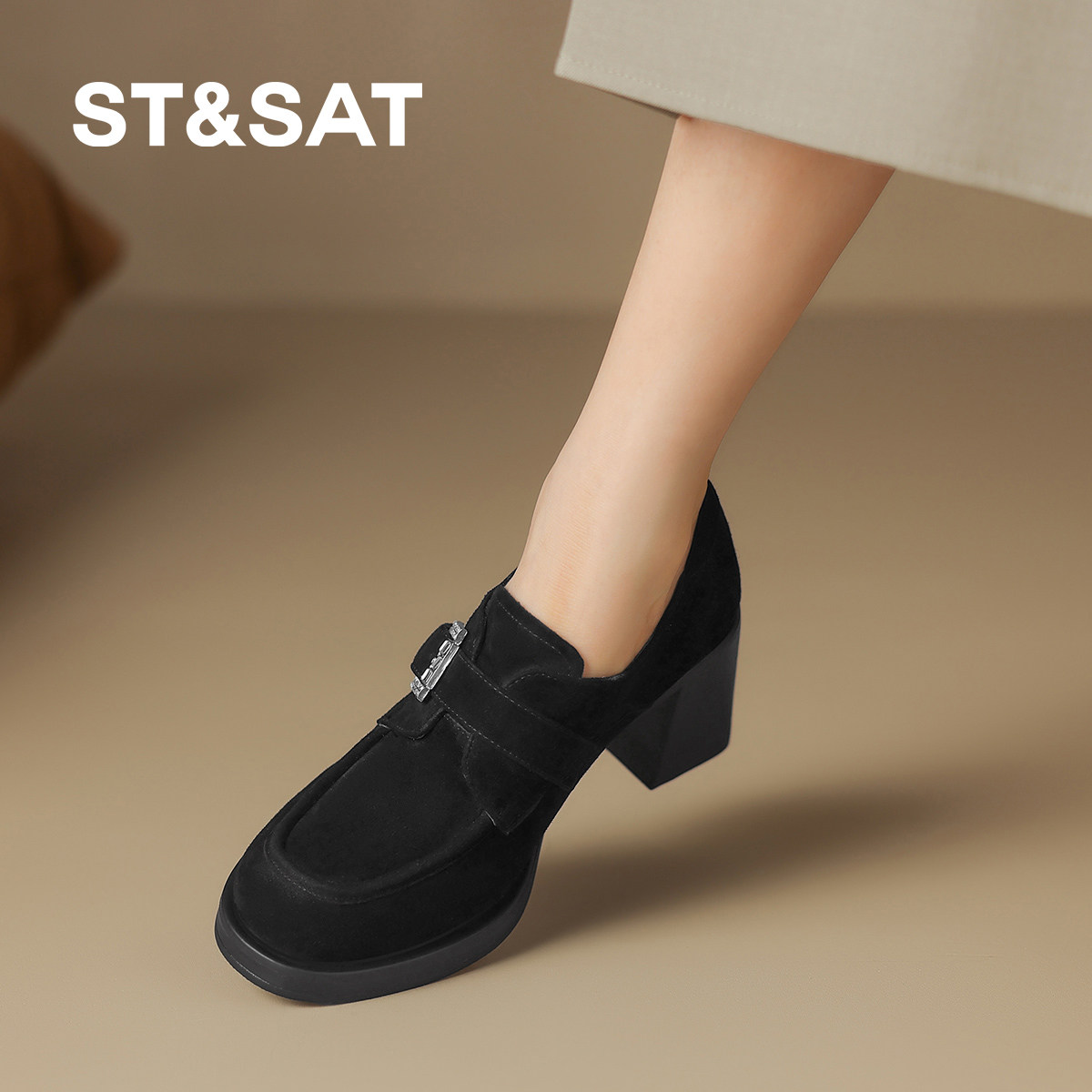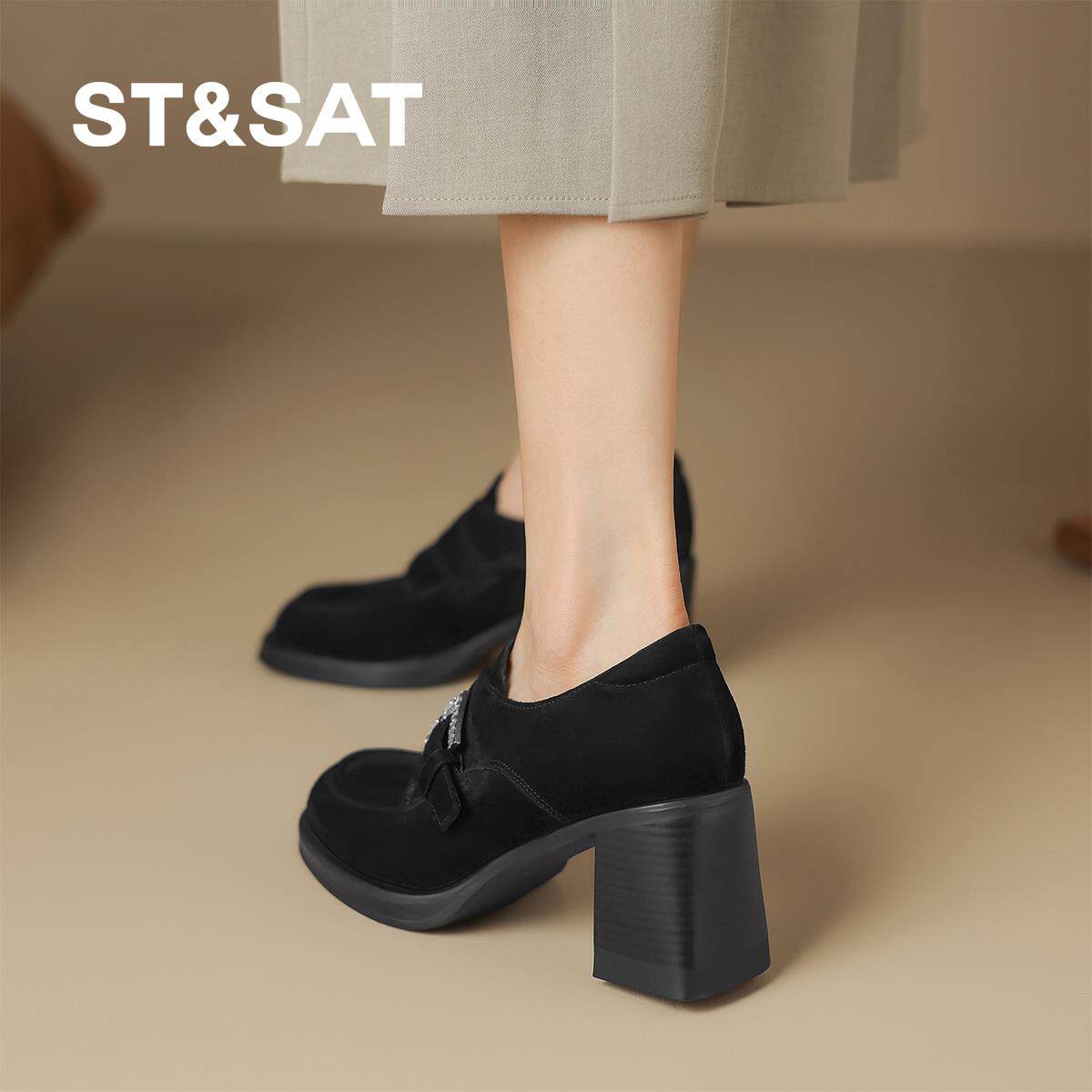 星期六2025新款复古粗跟乐福鞋女外穿不累脚懒人一脚蹬通勤女单鞋