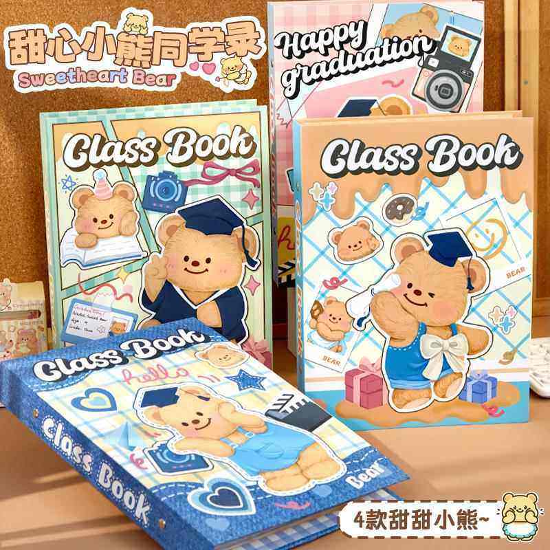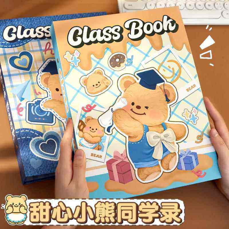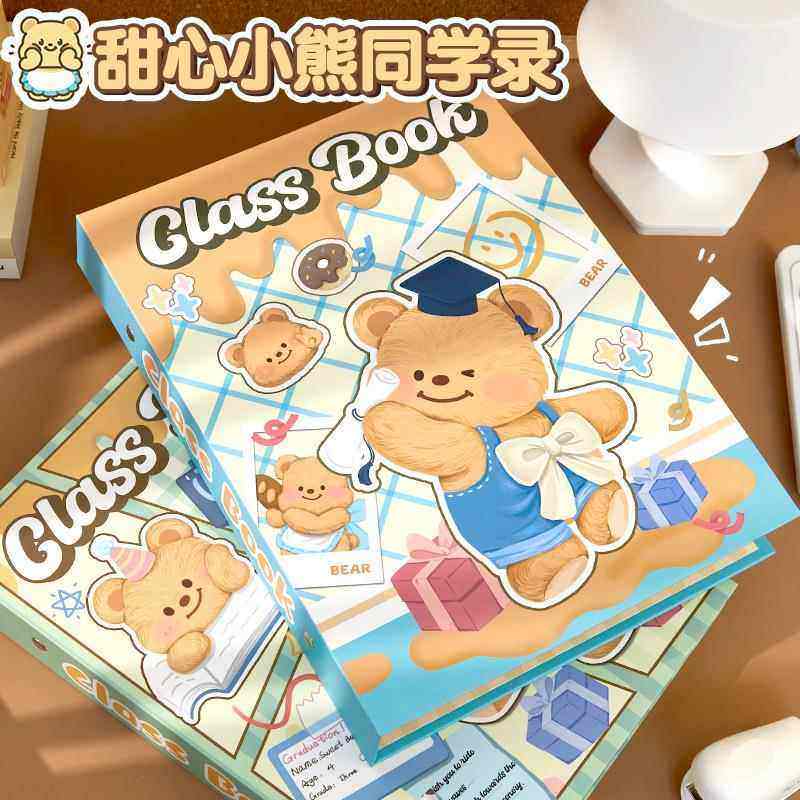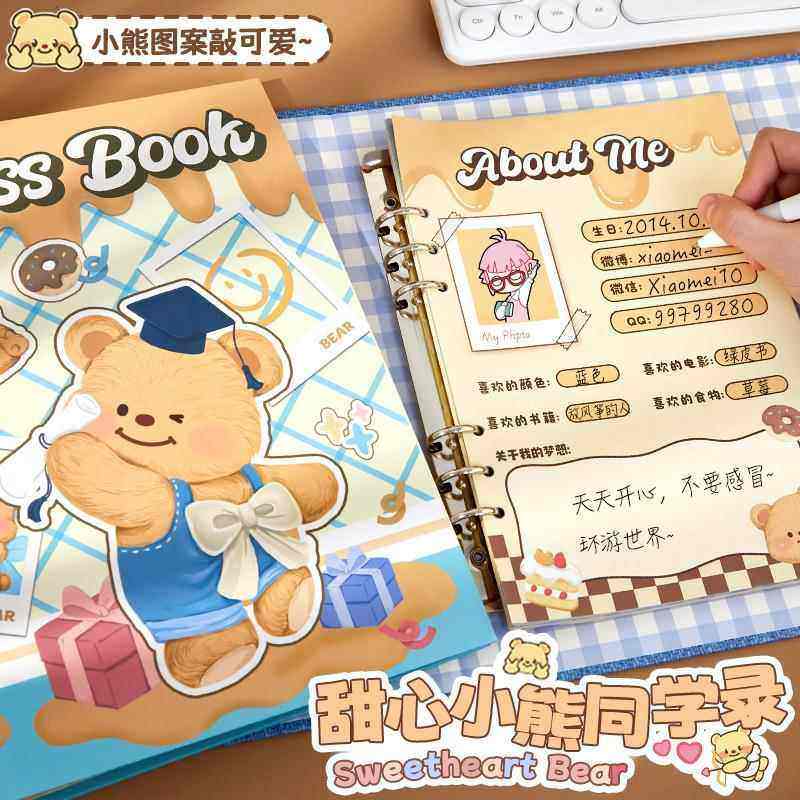 可爱甜心小熊同学录小学生六年级毕业纪念册2025新款女生高颜值ing风初中生留言通讯录活页可拆卸小众不撞款