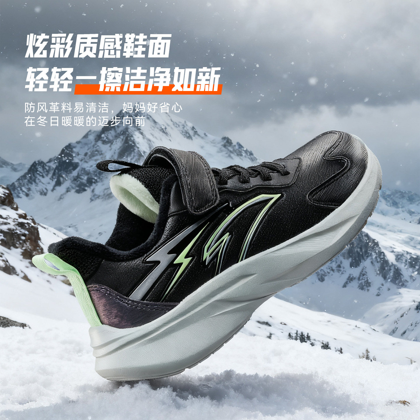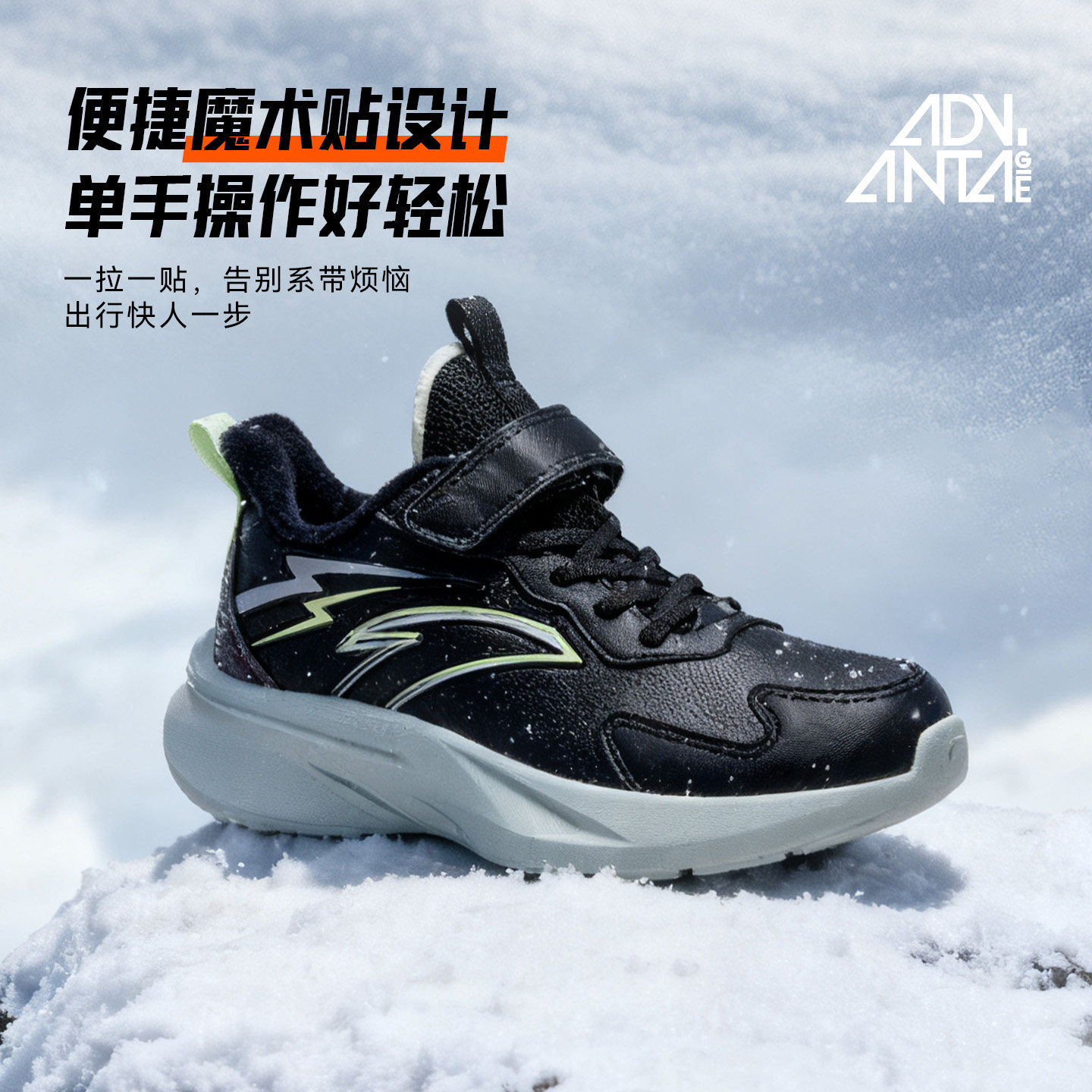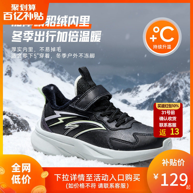 安踏儿童运动鞋2025年冬季新款大童加绒跑步鞋皮面保暖男童鞋子