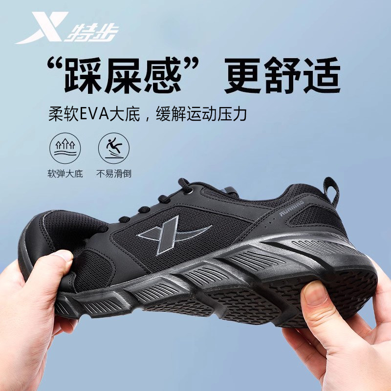 特步男鞋2025新款跑步休闲鞋子男网面透气正品黑色冬季皮面运动鞋
