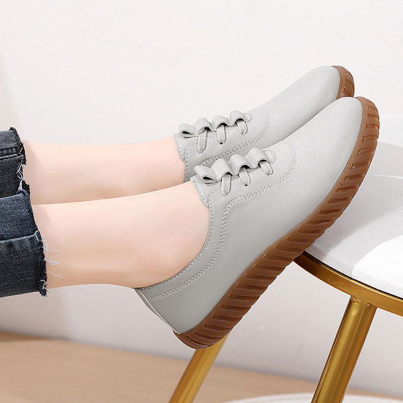真皮~骄屿复古珍珠芭蕾德训鞋春夏新款月牙底厚底休闲运动阿甘鞋