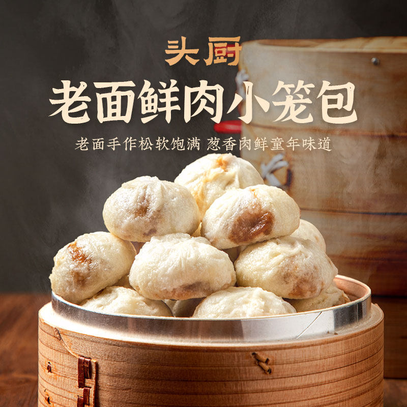 头厨嵊州老面小笼包鲜肉包子早餐半成品早饭速冻面点加热即食美味