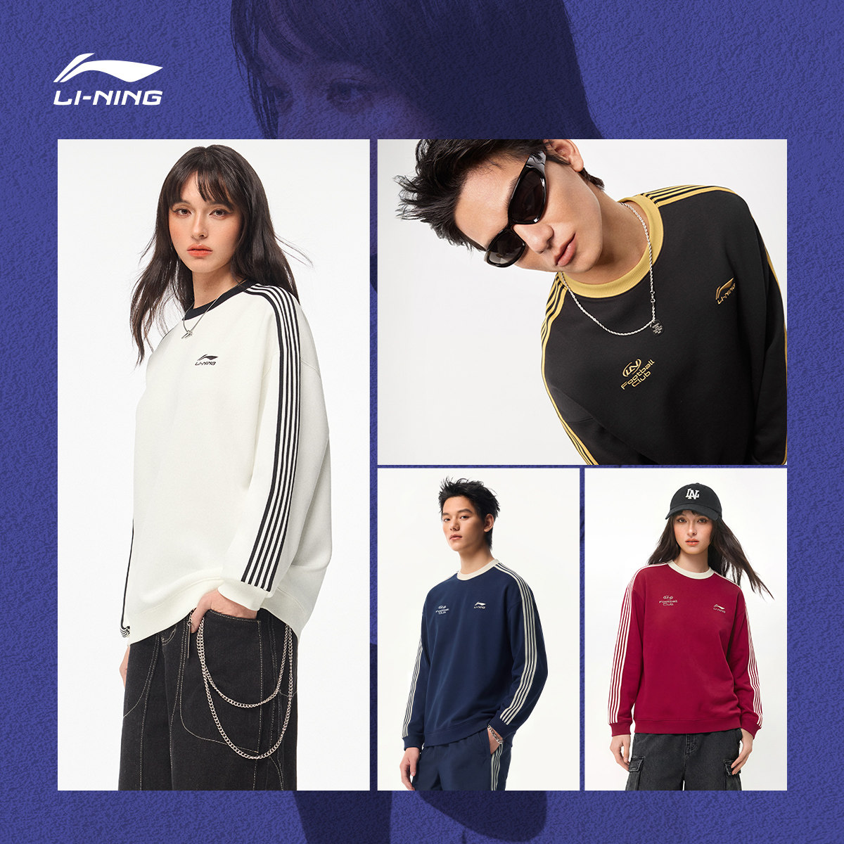 李宁球迷风卫衣女春季2026新款薄款长袖情侣圆领上衣男针织运动服