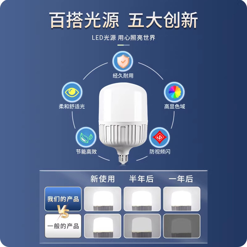 led灯泡超亮节能灯白光家用省电E27大螺口客厅室内灯照明圆柱形灯