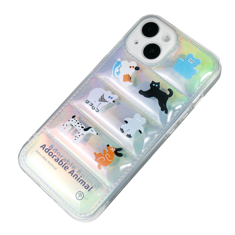 lz原创透明羽绒服气囊16手机壳iPhone15promax可爱卡通适用13苹果14保护套12全包17软壳小众创意镭射渐变防摔