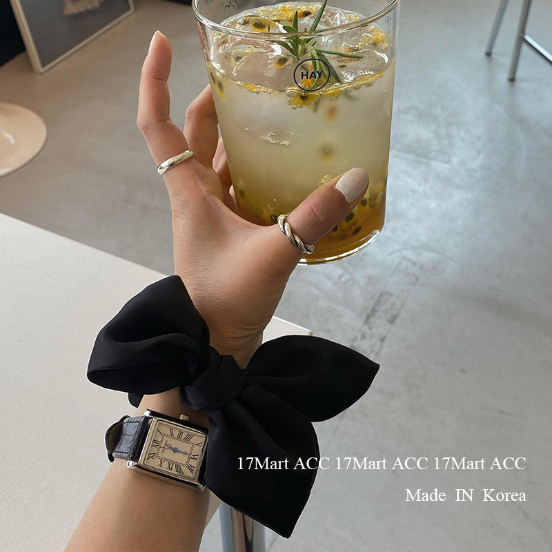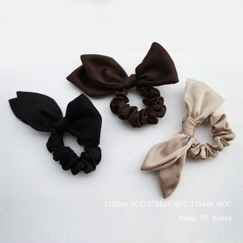 17mart韩国发饰美拉德缎面蝴蝶结大肠发圈复古低马尾头绳无痕发绳