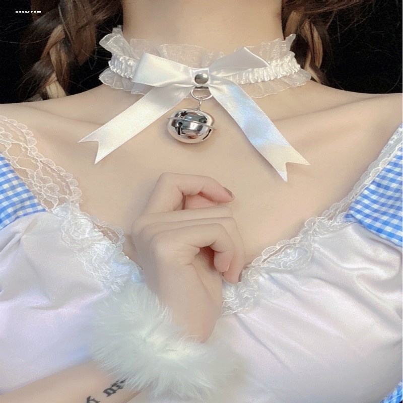 蕾丝蝴蝶结铃铛项链女choker脖子项圈配饰颈带挂脖个性颈链软妹潮