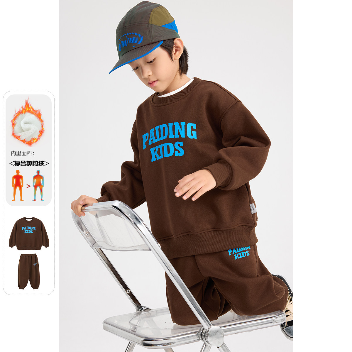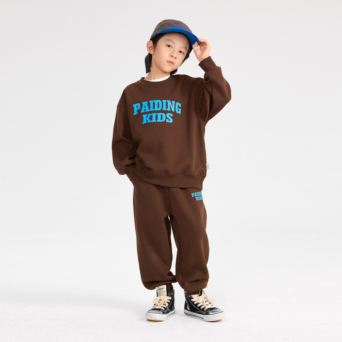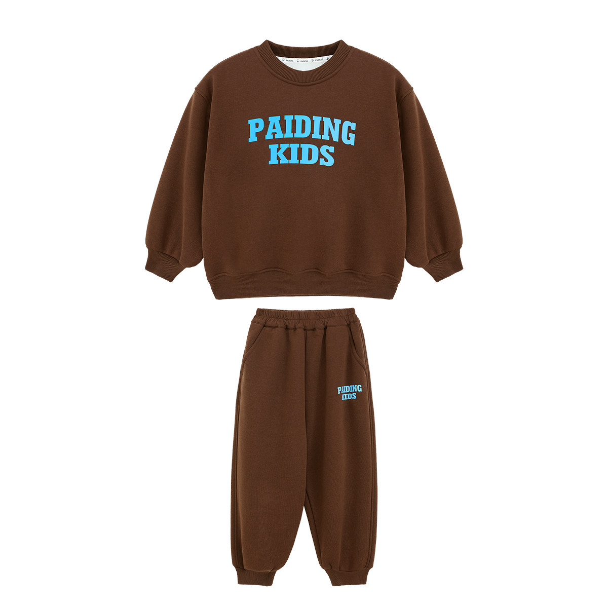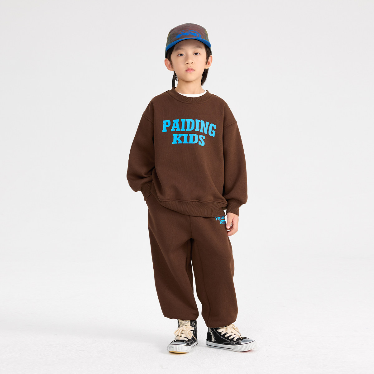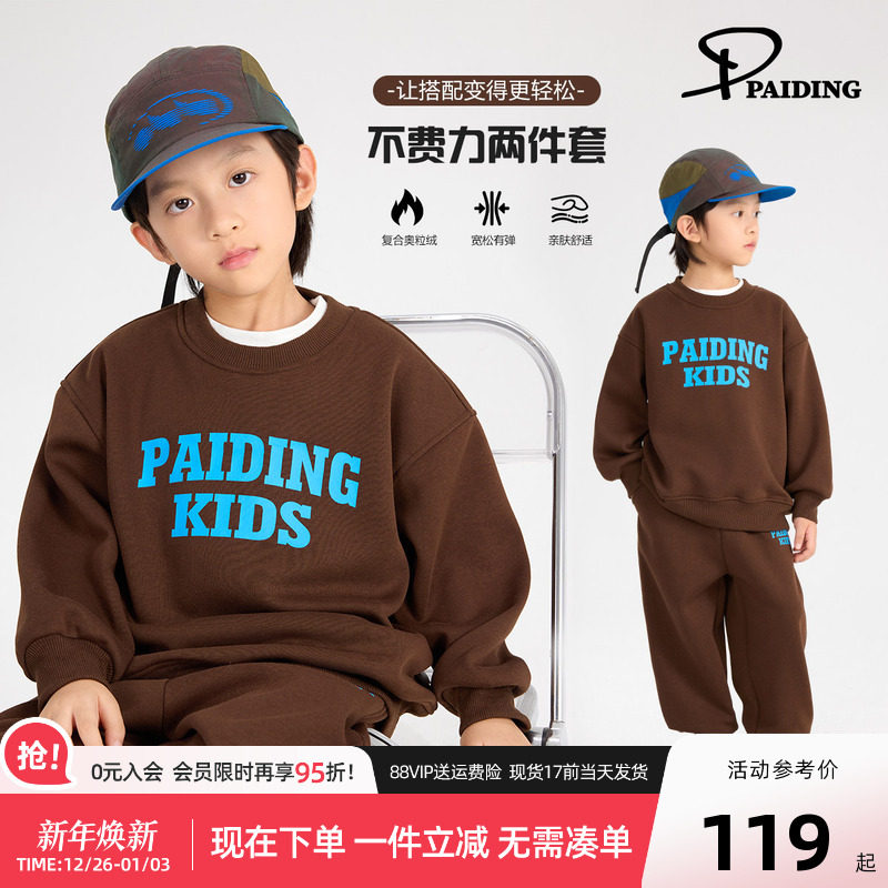 派町童装男童套装儿童加厚加绒运动保暖两件套2025新款中大童冬装