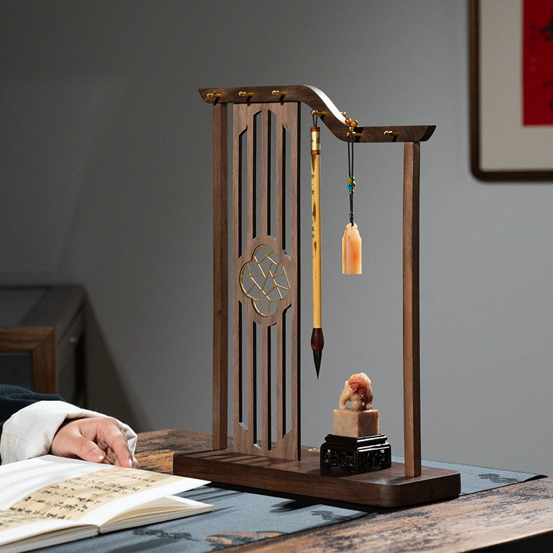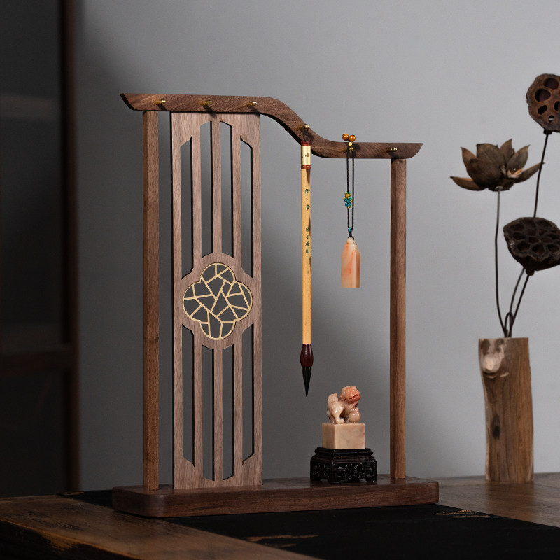 胡桃木实木创意笔挂 屏风摆件装饰中式送礼