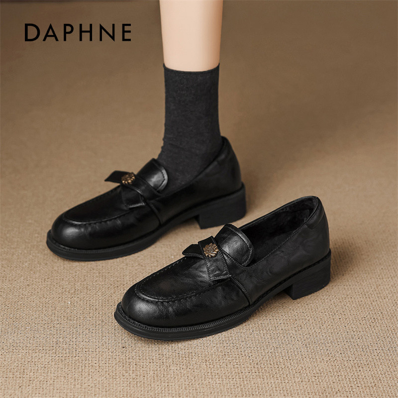 达芙妮棕色厚底乐福鞋女2026春季新款英伦风小皮鞋山茶花通勤单鞋