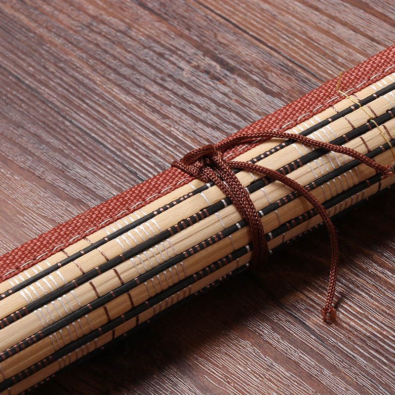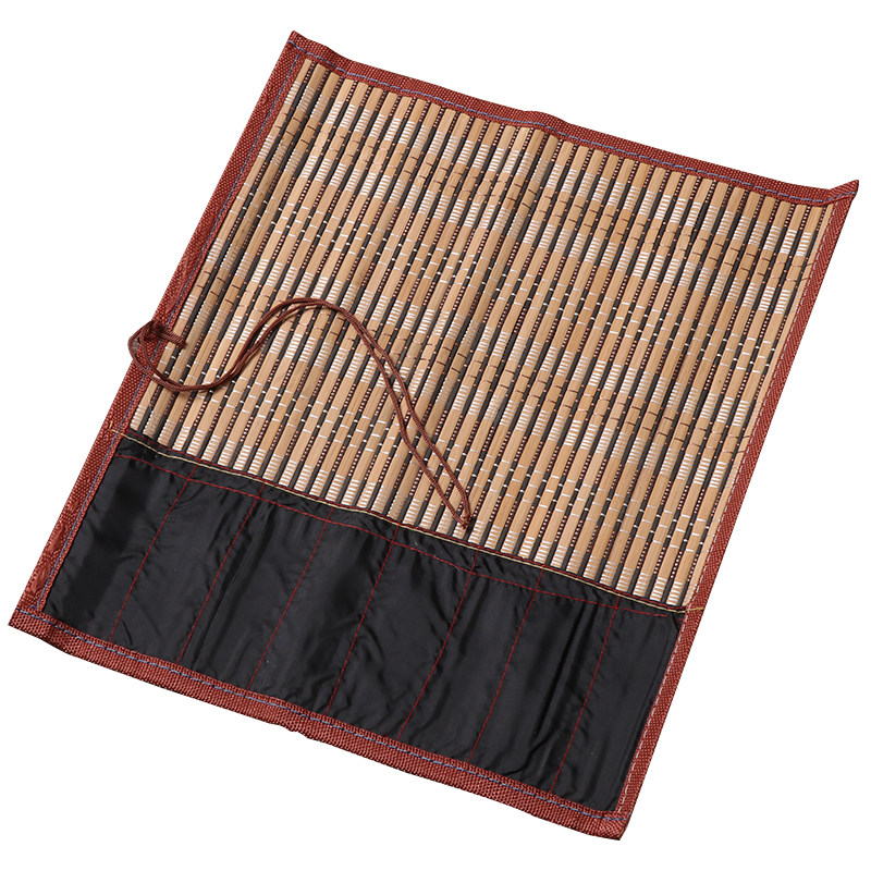 笔帘卷笔袋大号竹制毛笔笔帘古风带8个口袋36*32cm书法文房四宝竹杆编织毛笔卷帘带兜收纳放置书法国画用品