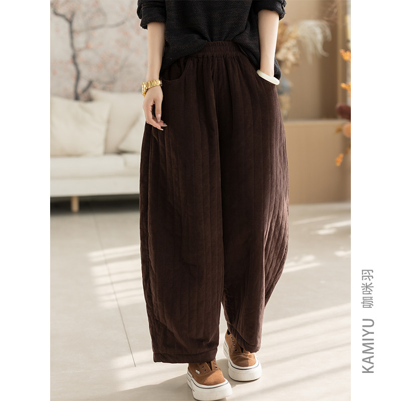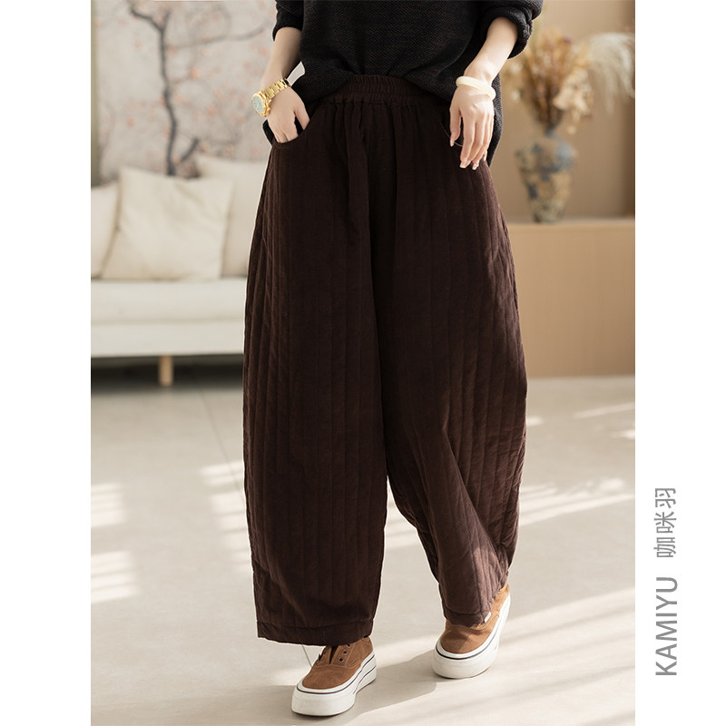 咖咪羽全棉灯芯绒休闲裤女秋冬新款直筒宽松女士流行女装休闲裤女