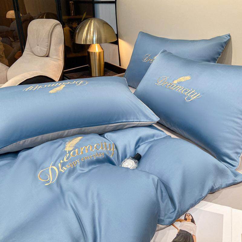 轻奢风冰丝床上四件套夏季夏天夏凉裸睡床品宿舍床单被套三件套
