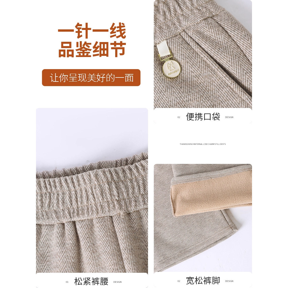 【正品】妈妈裤子冬装加绒加厚2025新款阔腿直筒裤中老年女毛呢裤