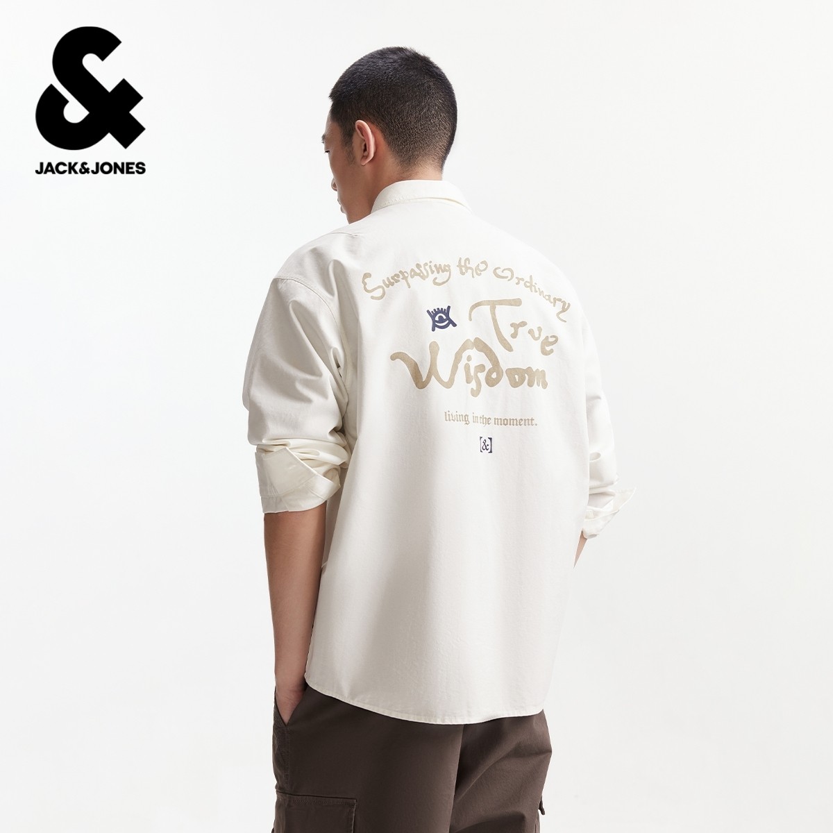 【纯棉衬衫男款】杰克琼斯春季新款长袖衬衣涂鸦休闲上衣外套男装
