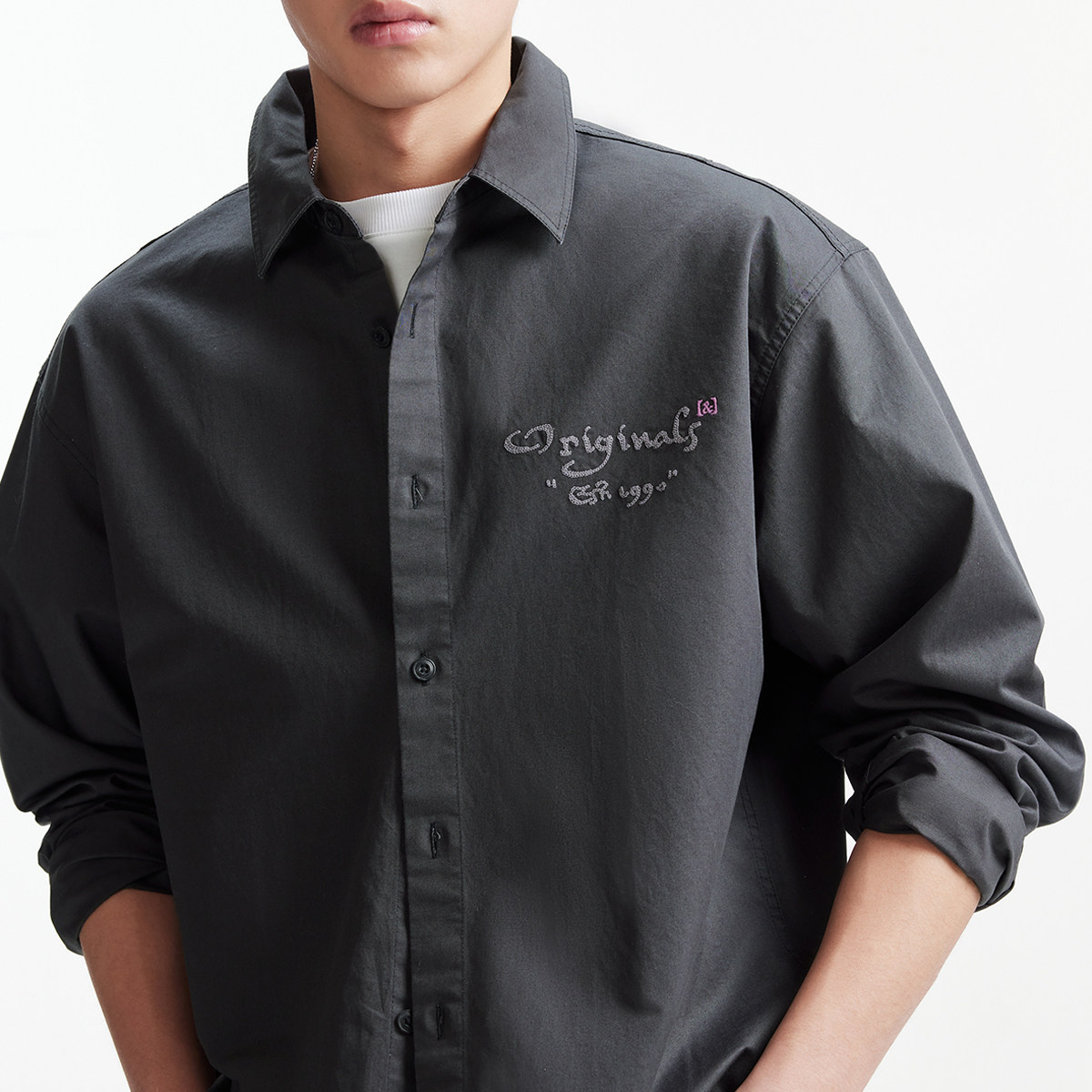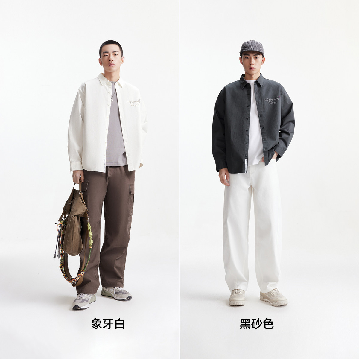 森马长袖衬衫男宽松工装外套情侣款纯色百搭上衣纯棉秋装潮酷流行
