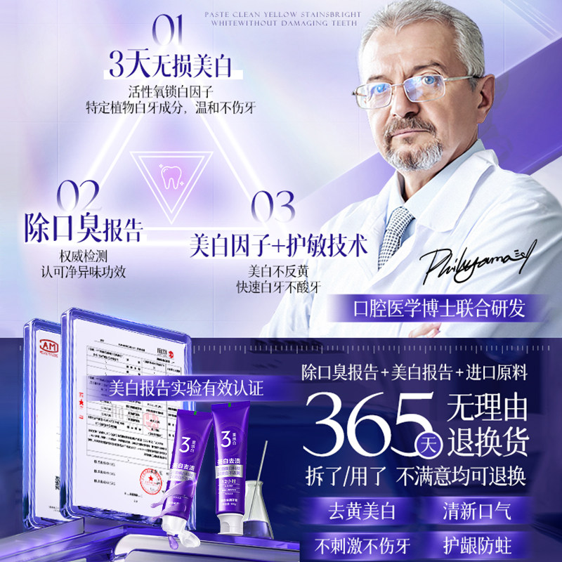 【肖战同款】舒客色修白牙膏美白冷光蓝紫色去黄清新口气旗舰正品