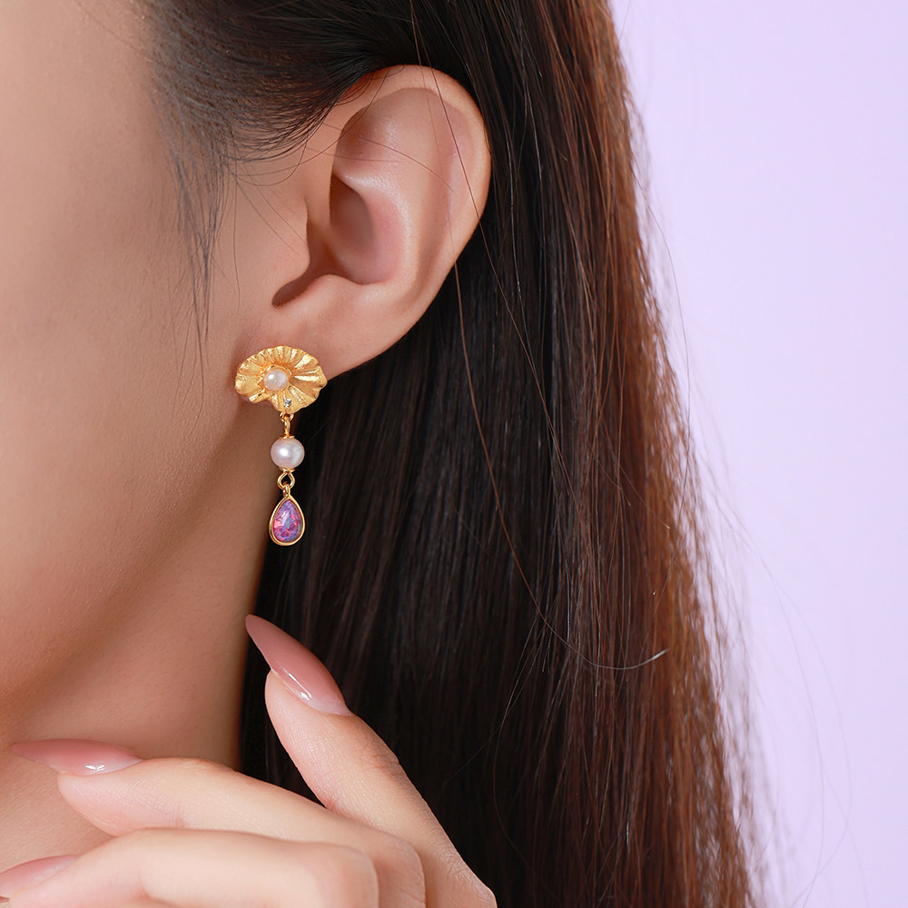 周大生*DC梦幻睡莲耳钉女生纯银925珍珠耳饰法式浪漫闺蜜生日礼物