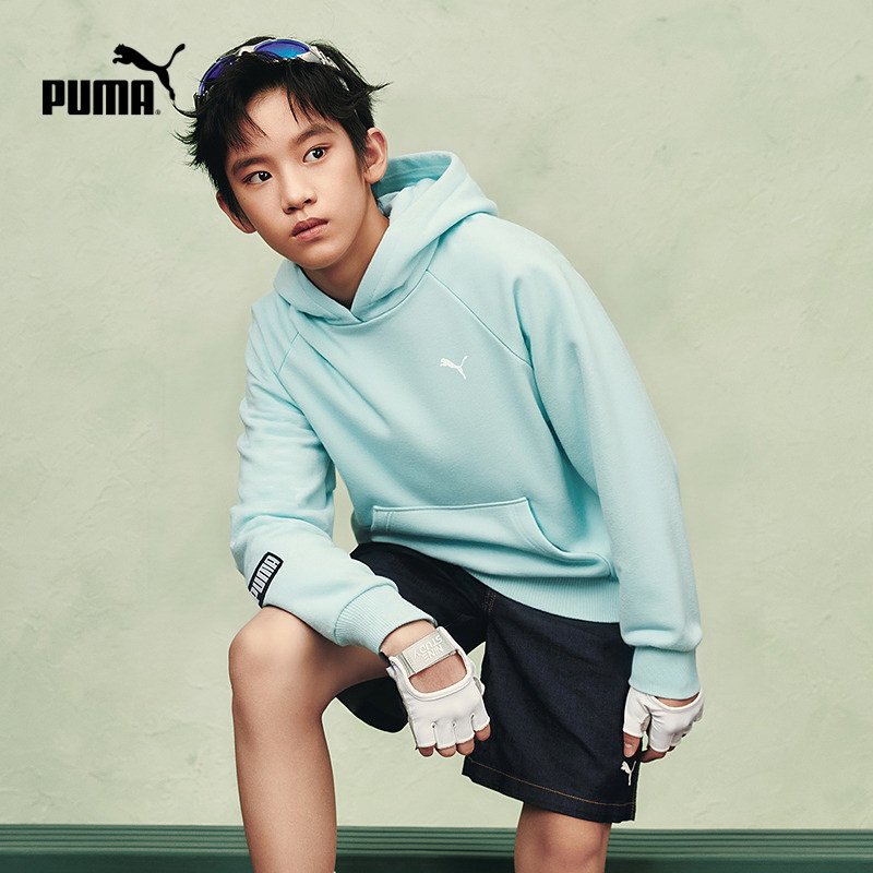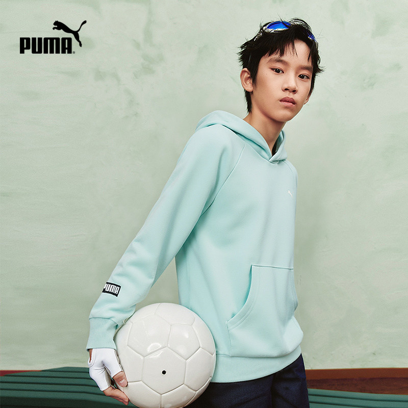 PUMA彪马童装26春季新儿童长袖卫衣连帽设计休闲纯色套头运动上衣