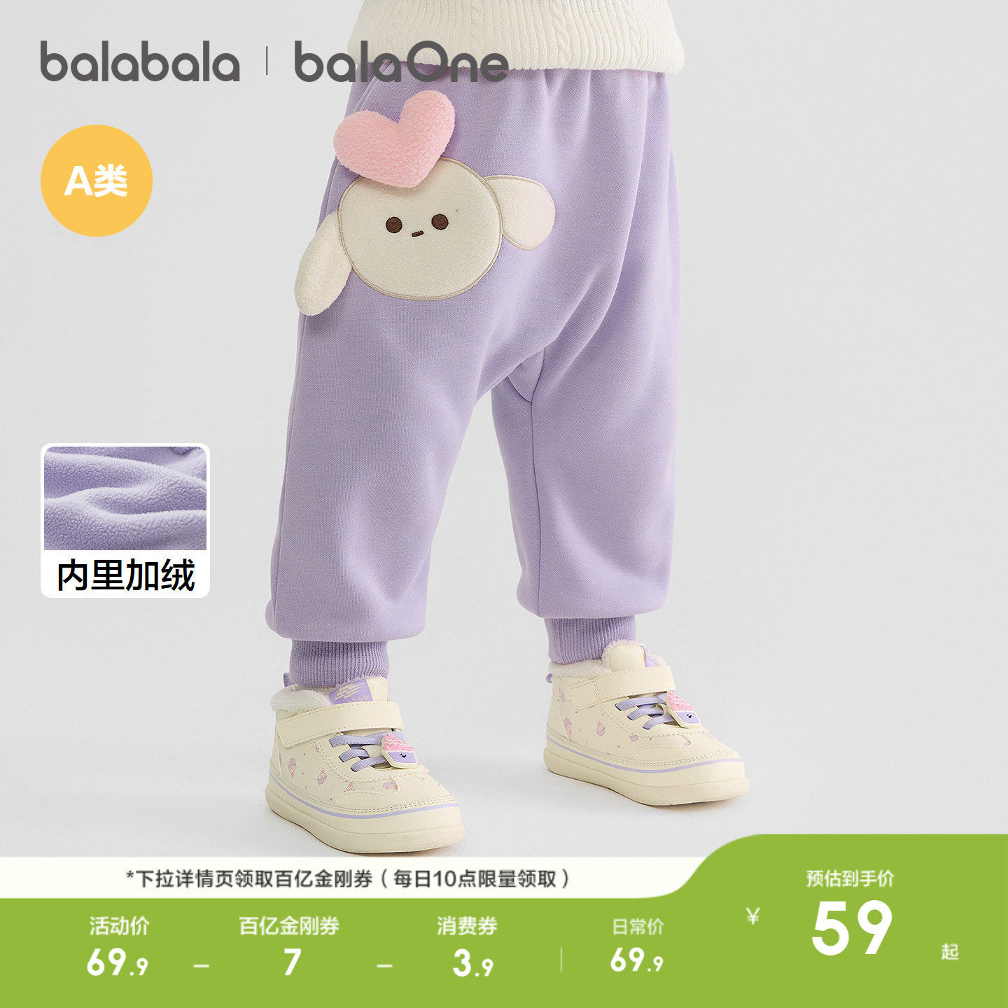 巴拉巴拉童装宝宝裤子儿童长裤2026秋冬装新加绒加厚婴儿pp裤保暖