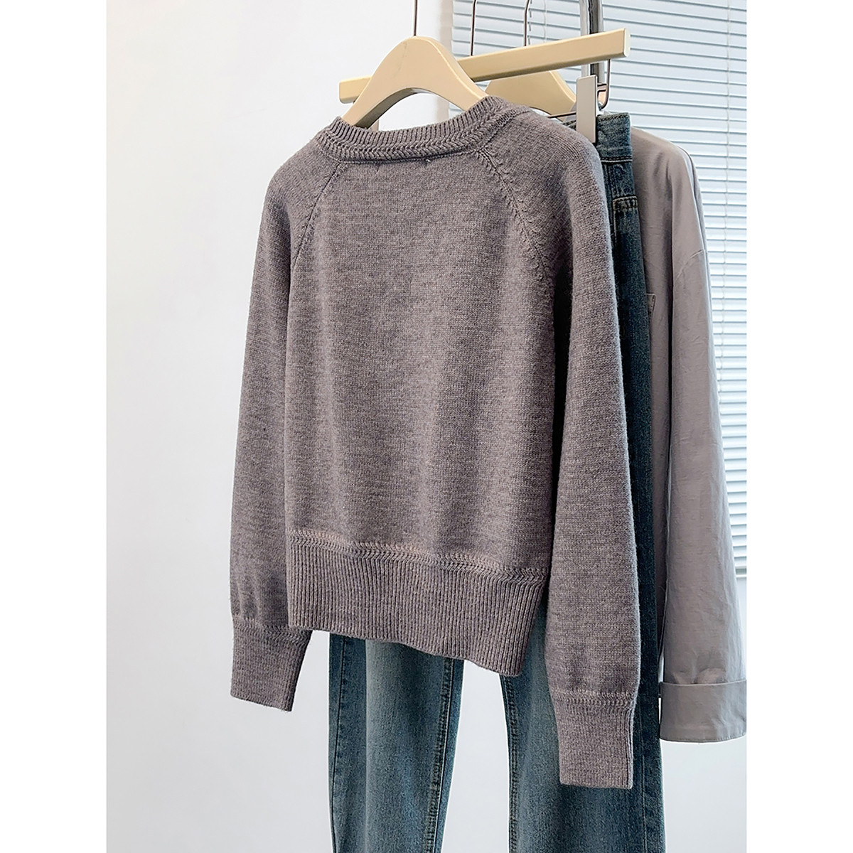 B【第二件0元】针织衫毛衣圆领套头短款大码宽松百搭打底针织