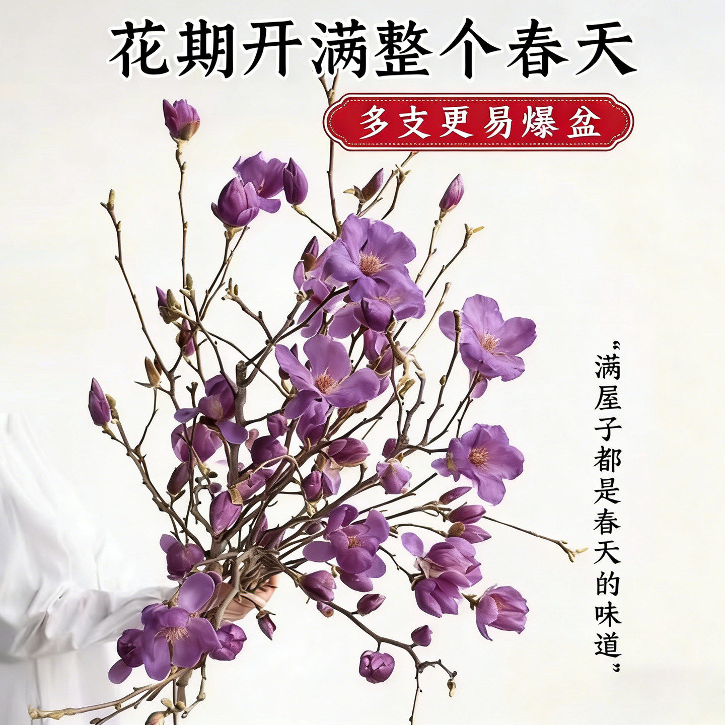 玉兰花水培植物室内好养鲜切干枝带花苞紫玉兰桌面鲜花卉盆栽绿植