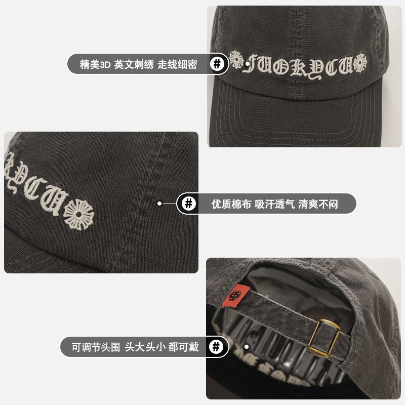 美式复古字母灰色棒球帽女高级感宽檐大头围显脸小百搭鸭舌帽子男