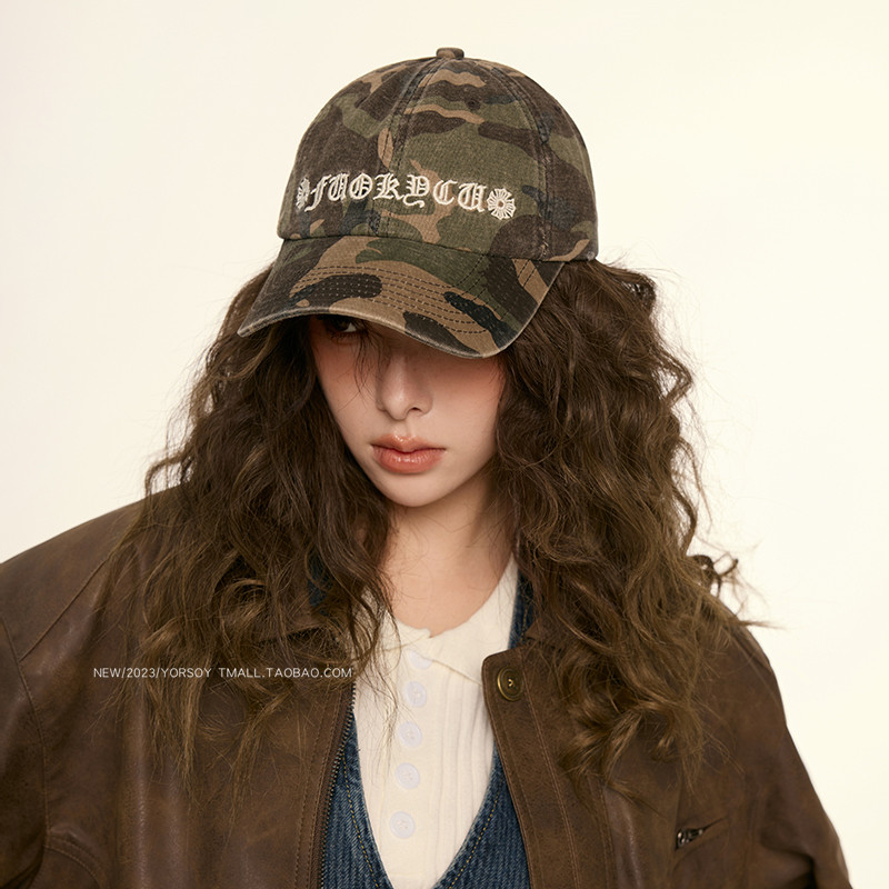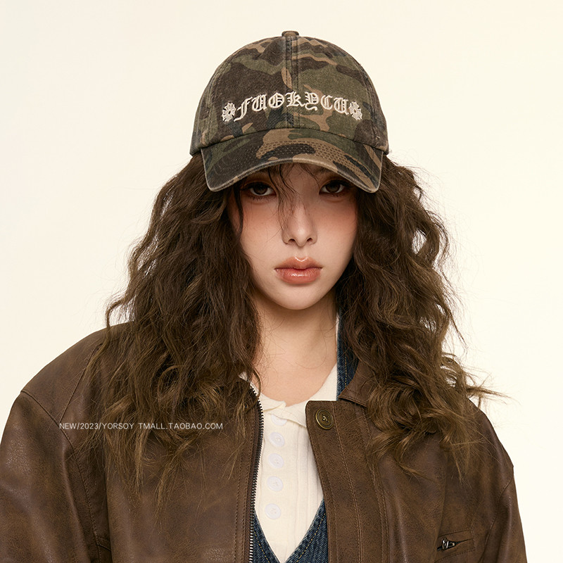 美式复古迷彩加深顶鸭舌帽子女辣妹高街休闲街头棒球帽男宽檐大头