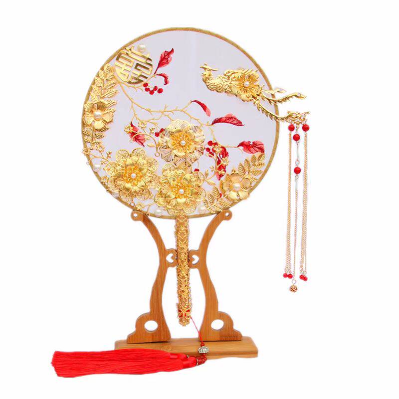 中式团扇手捧花 婚礼新娘喜扇龙凤褂宫扇圆扇秀禾服团扇diy材料包