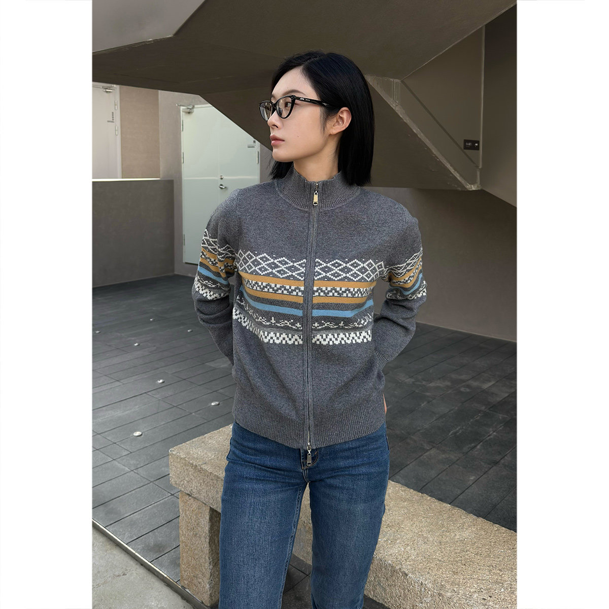 【费尔岛提花】诗篇专选撞色毛衣立领拉链针织衫2025秋款
