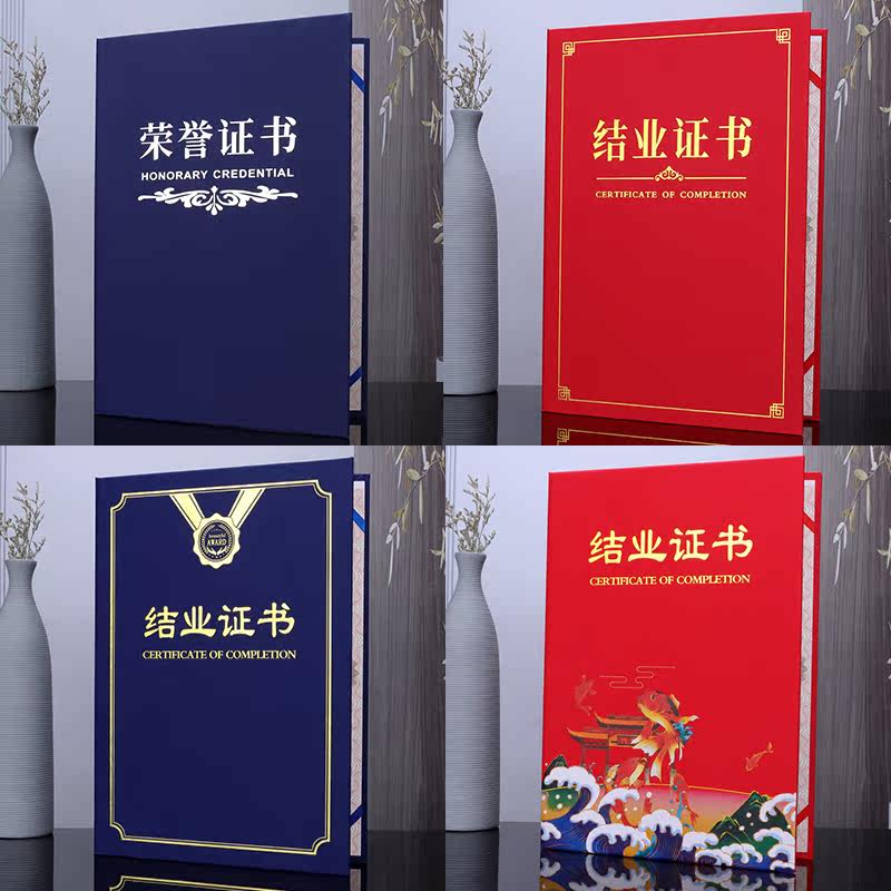 结业证书封皮定做外壳上岗培训证书进修岗位职业技能等级封面定制a4结题烫金聘书荣誉证书蓝色内芯页打印