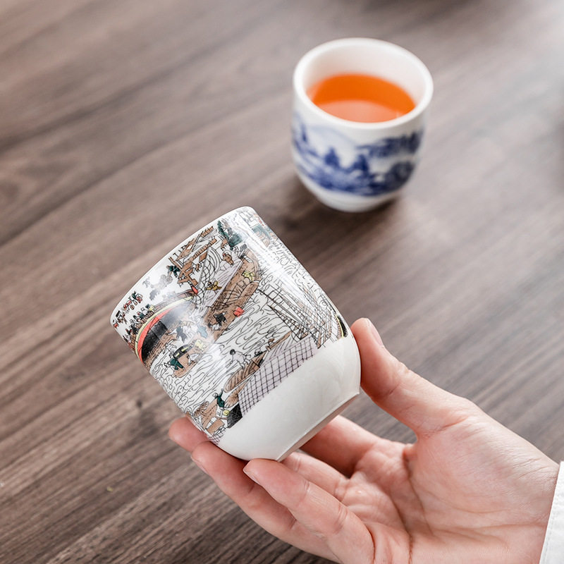 茶杯功夫茶具陶瓷茶盏茶碗家用单个六个品茗杯主人杯大号蓝牡丹