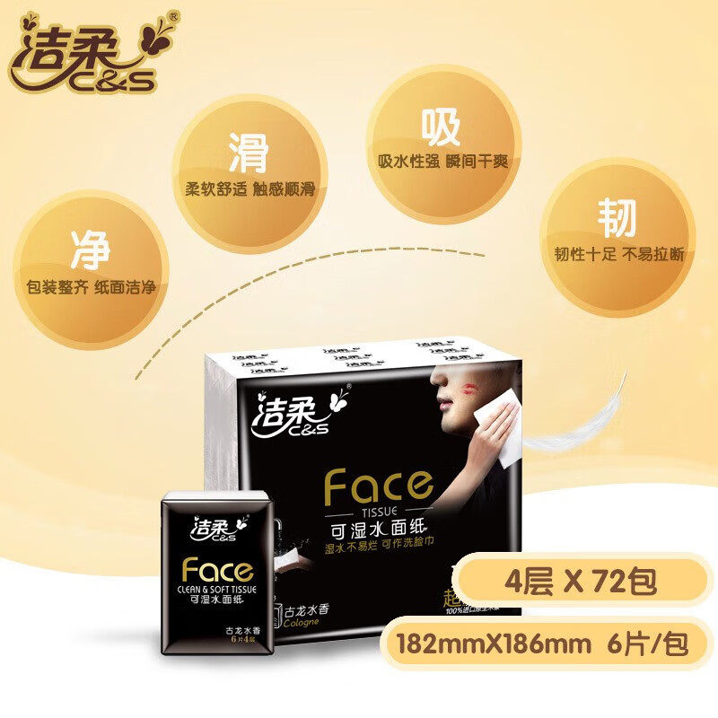 洁柔古龙水香手帕纸4层加厚小包便携式餐巾纸可湿水面巾纸卫生纸