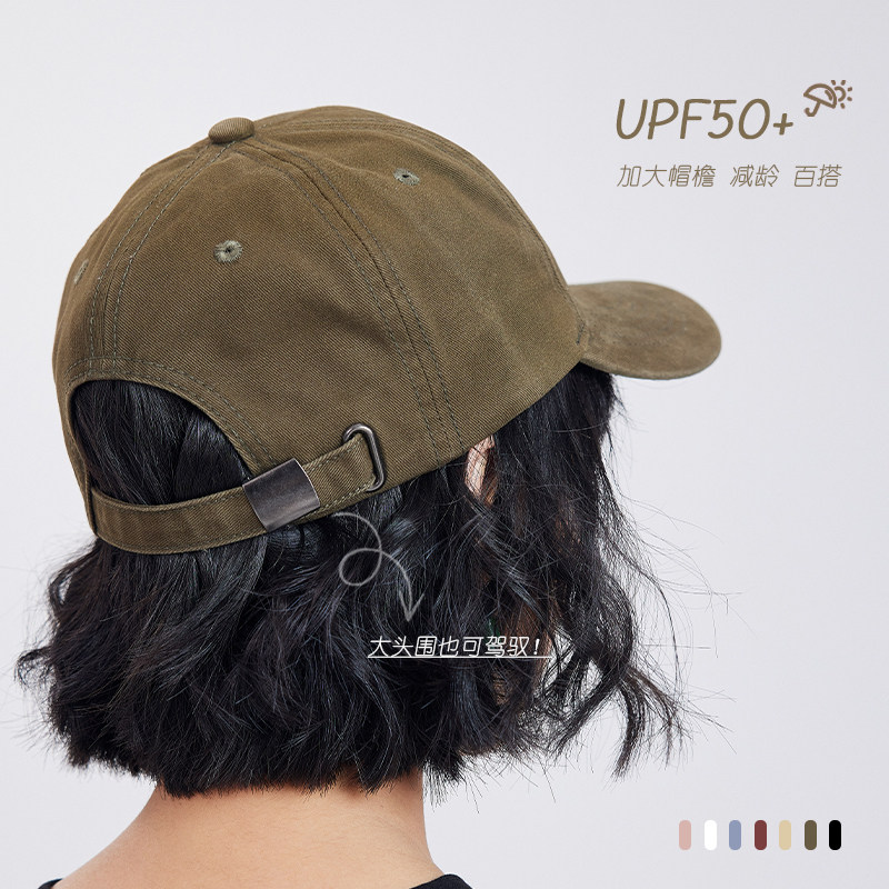 美式复古字母灰色棒球帽女高级感宽檐大头围显脸小百搭鸭舌帽子男