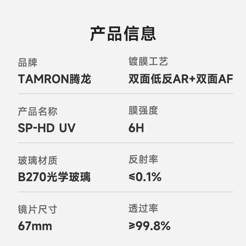 腾龙(Tamron)SP HD-UV 高清多层镀膜光学UV保护镜 微单单反相机滤镜保护镜 UV滤镜 SP系列HD-UV滤镜