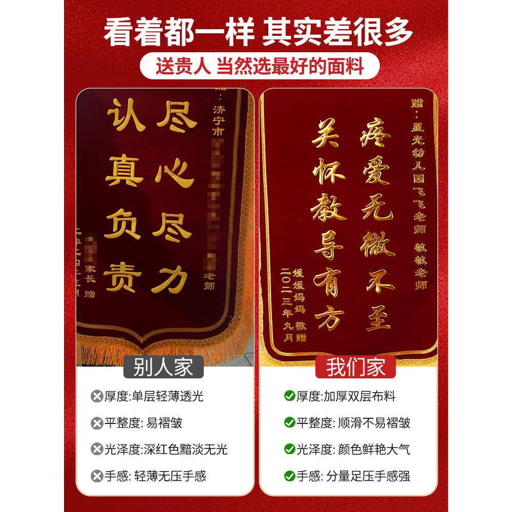 高档锦旗定制定做感谢赠送医生幼儿园老师月嫂物业民警装修队锦旗