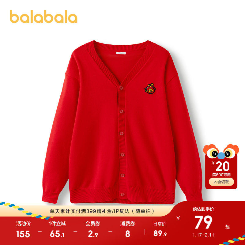 巴拉巴拉童装儿童毛衣男童女童春秋2025新款开衫亲子针红色拜年服