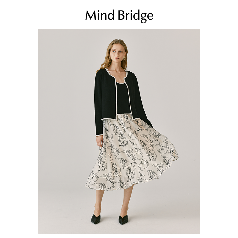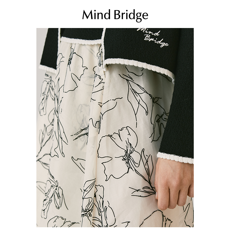 MB MindBridge2026年春季女气质A字印花裙显瘦半身裙法式优雅裙子