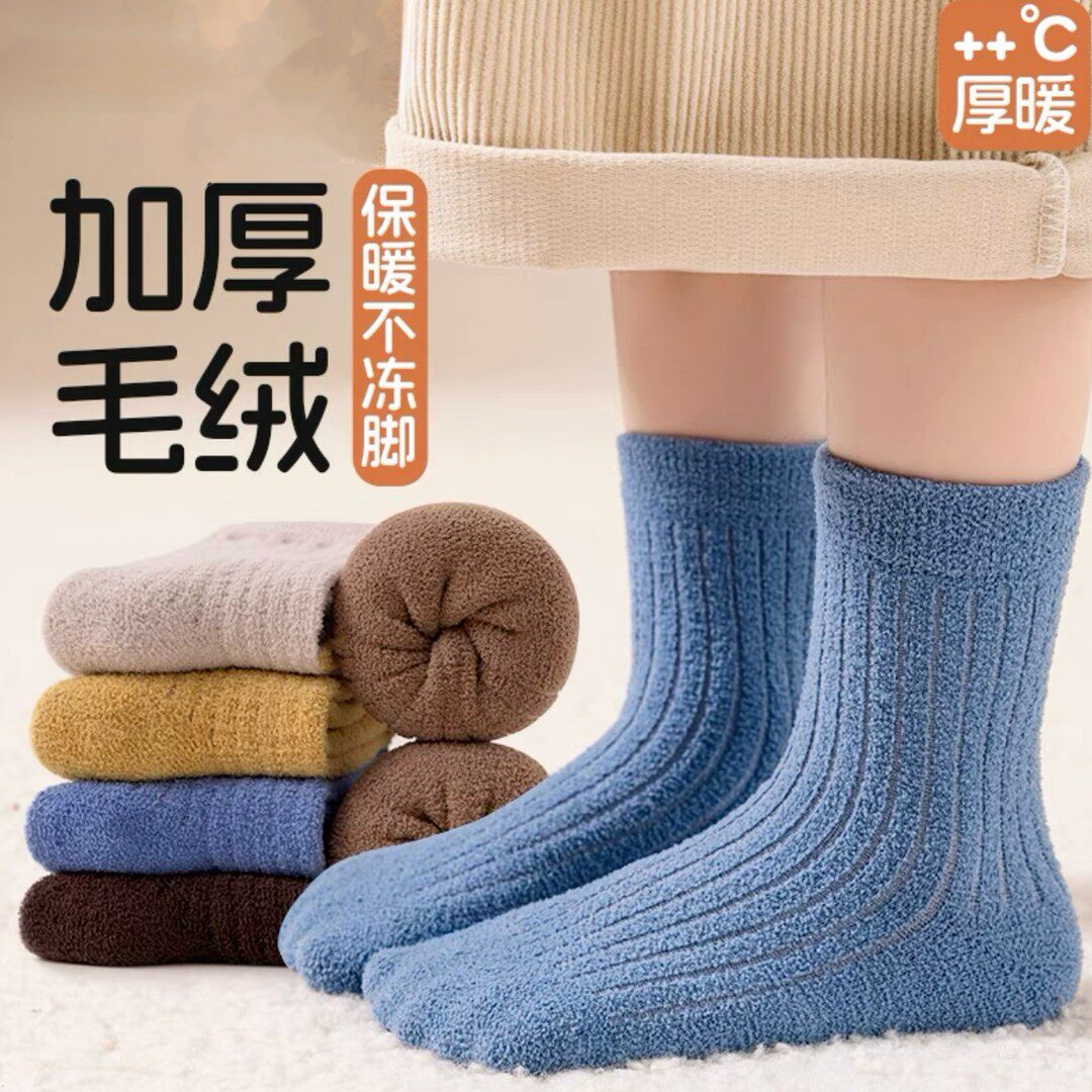 女童袜子加绒加厚冬季儿童保暖毛绒袜中大童女孩厚款中筒白色黑色